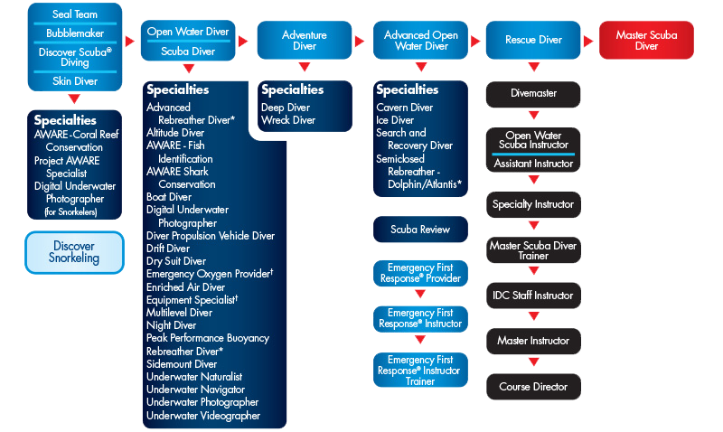 Schließe dich den Besten der Besten im Sporttauchen an und mache als PADI Master Scuba Diver das Tauchen zu deinem Lifestyle. Mit der PADI Master Scuba Diver Stufe wirst du Teil einer ganz besonderen Gruppe von respektierten Tauchern, die diese Stufe durch eine umfassende Ausbildung und Taucherfahrung erlangt haben. Weniger als 2% aller Taucher erreichen diese besondere Stufe. Wenn du deinen Master Scuba Diver Taucherausweis (d. h. dein PADI MSD „Brevet“) vorzeigst, weiß jeder sofort, dass du viel Zeit in verschiedenen Tauchumgebungen verbracht und dabei schon allerhand erlebt hast. Jeder Taucher, der mindestens 12 Jahre alt ist, sollte auf den Master Scuba Diver hinarbeiten. Der Weg dorthin beginnt mit dem PADI Open Water Diver, gefolgt vom PADI Advanced Open Water Diver und dem PADI Rescue Diver (oder qualifizierenden Brevetierungen). Außerdem musst du über 5 PADI Specialty Diver Brevets verfügen und mindestens 50 Tauchgänge in deinem Logbuch haben.